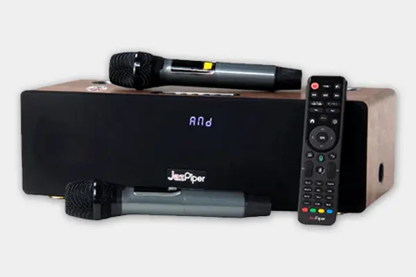 JazPiper+ V3 features a refined 4-way speaker system, comprising of two treble speakers and two mid-bass speakers, ensuring a balanced audio output ideal for karaoke and home entertainment.